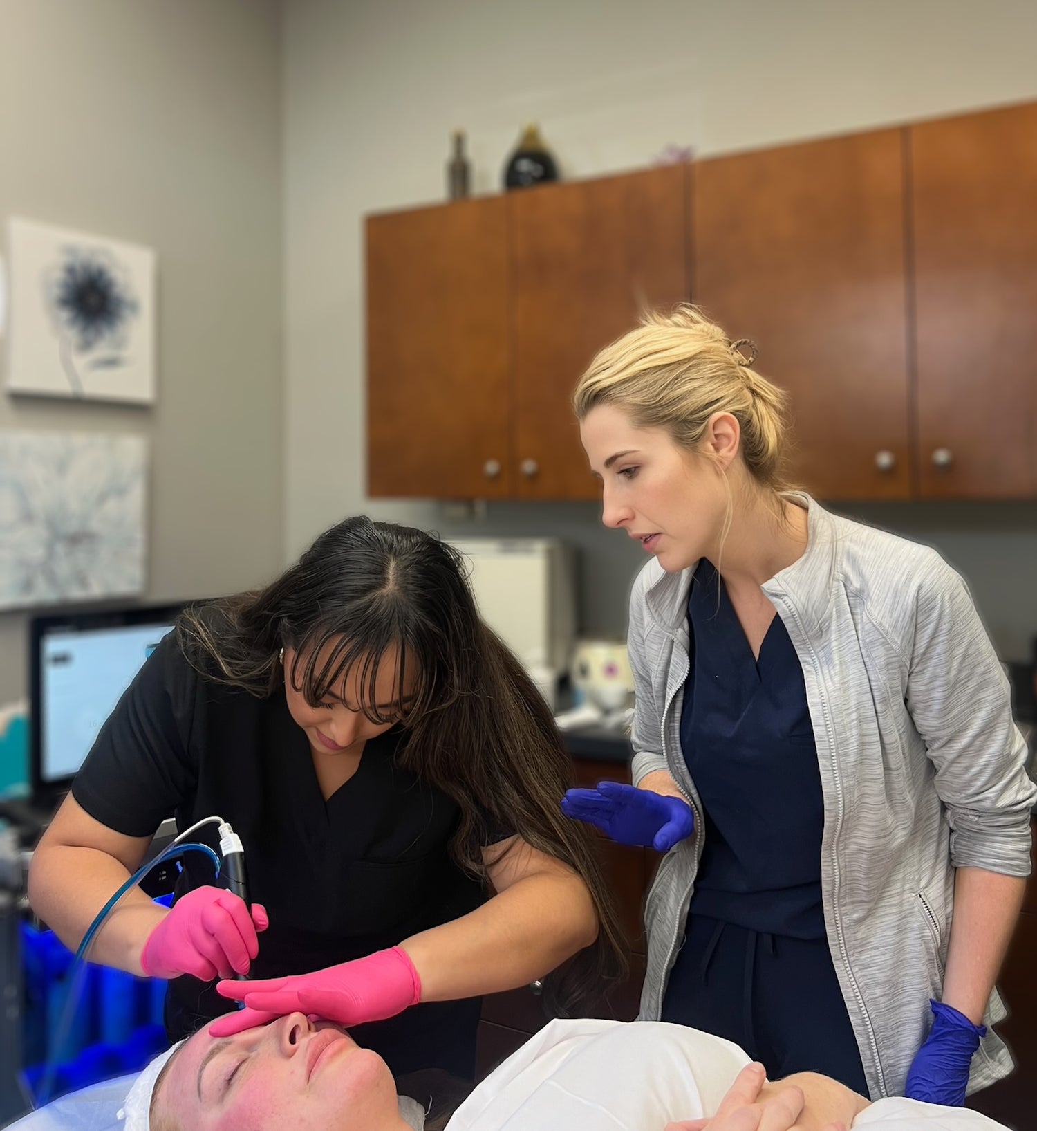 Exosome and PDRN therapies are advanced skin treatments designed to rejuvenate and repair your skin at a cellular level. Exosomes deliver growth factors and proteins that stimulate healing and boost collagen and elastin, while PDRN (Polydeoxyribonucleotide) promotes cell regeneration, improves hydration, and enhances skin elasticity. Together, they help reduce fine lines, improve texture, and restore a radiant, youthful glow, and they can be paired with treatments like microneedling, laser or HydraFacial® for even better results.